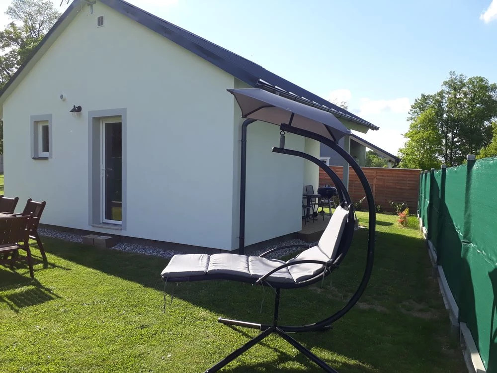 - Skládá se z přízemí a podkroví. V přízemí se nachází společenská místnost, její součástí je také kuchyně (sedací souprava, stůl, židle, televize), dále 2 ložnice, každá se dvěma lůžky a koupelna.