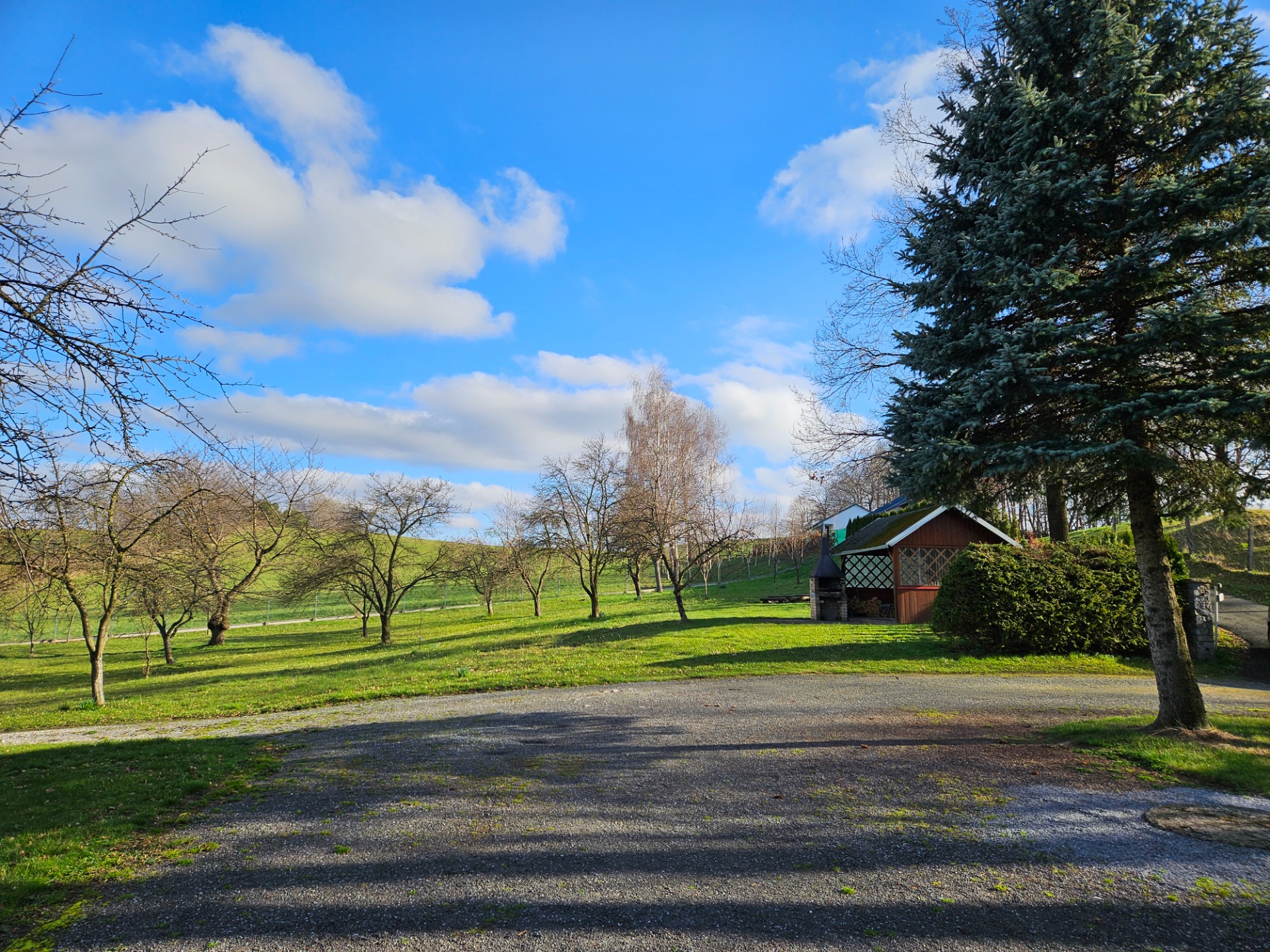 Okolí domku tvoří udržovaná zahrada s ovocnými stromy a altánkem se zahradním krbem, kde si můžete užít příjemné chvíle s rodinou či přáteli.