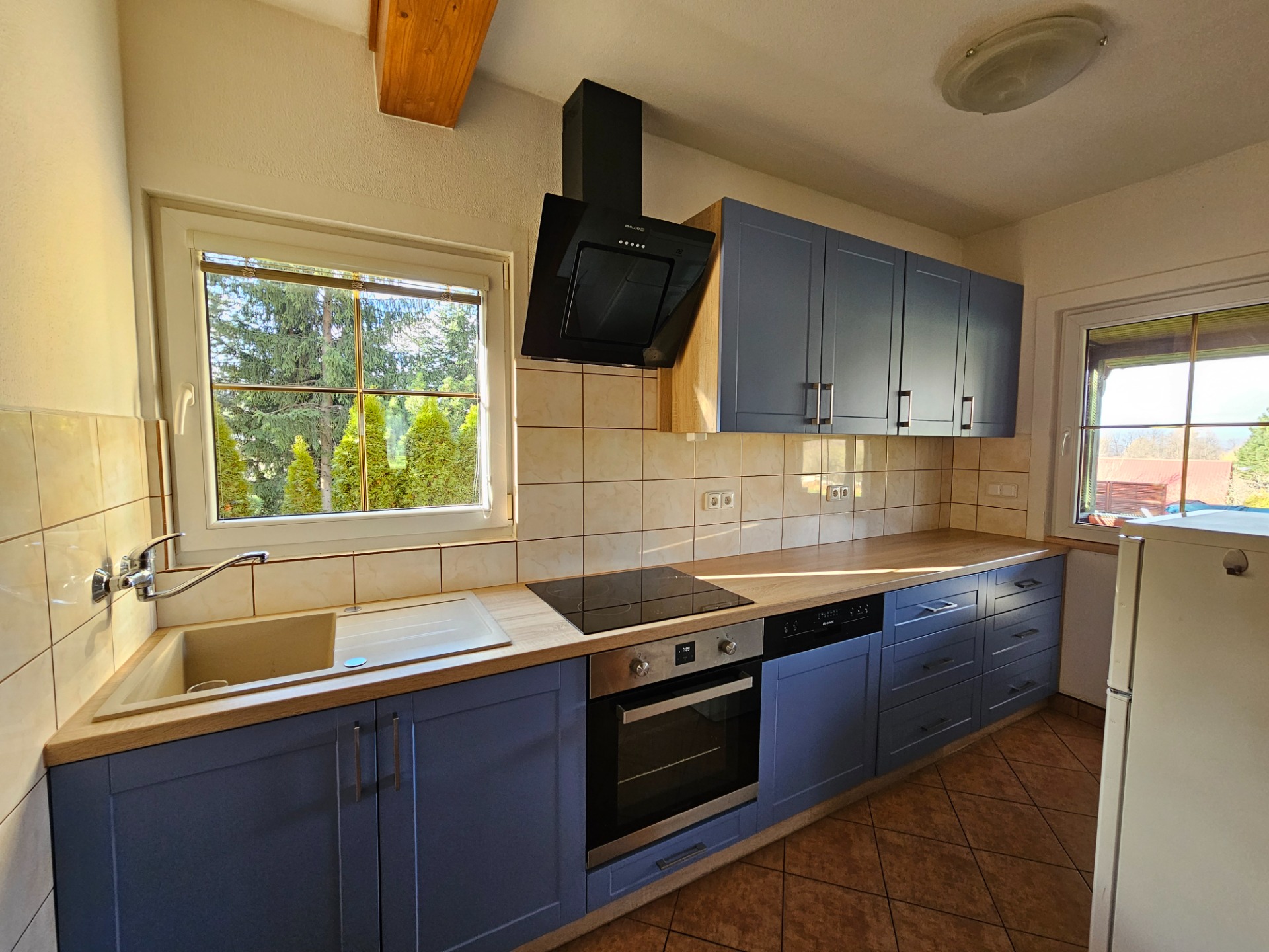 Plně vybavená kuchyně s lednicí, sporákem s elektrickou troubou, mikrovlnnou troubou, varnou konvicí a kávovarem.